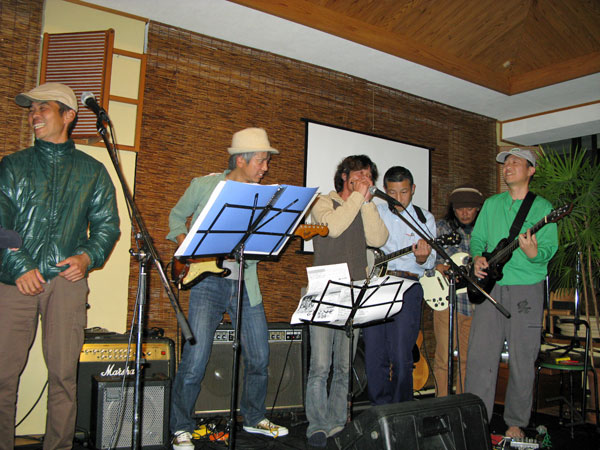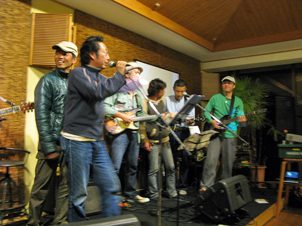 前夜祭では、我らがローリングスマイルズも、翌日のオープニングでハシが残した歌詞にガニさんが曲を付け、みんなでアレンジした「俺たちもっと」のリハーサルを。