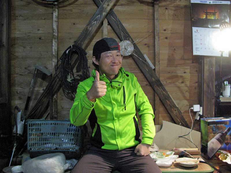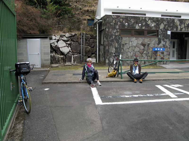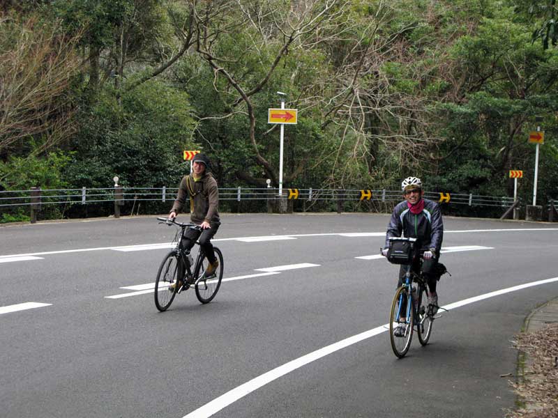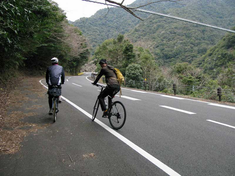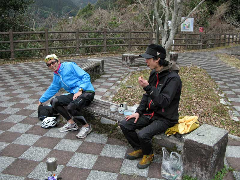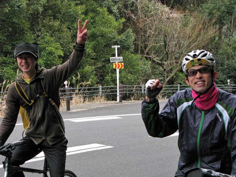 夏に、一緒に西米良キャンプツーリングに行ったKくん(宮崎市)に加え、最近チャリを購入した木工職人Mくん(綾町)。