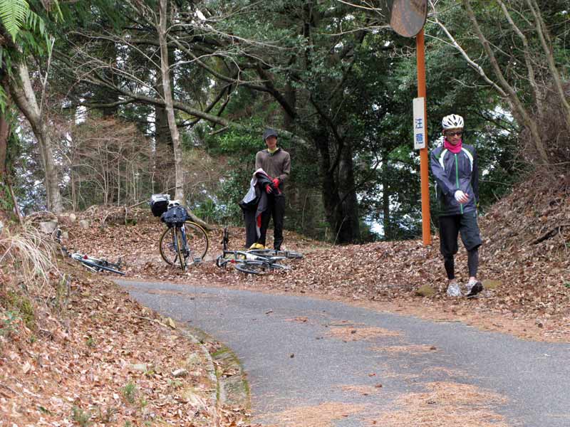 峠に到着〜!お疲れ様、と言いたいところですが、このコース、実はこれからの下りも結構くせ者。