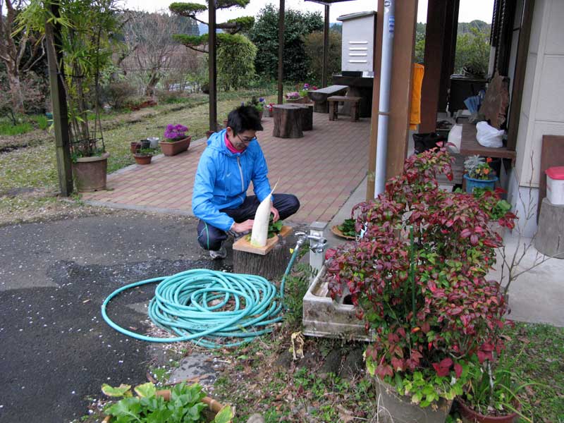 うちの畑から大根、ホウレンソウ、春菊、椎茸を頂き、綾豚と徳丸豆腐に昆布出汁、シンプルにポン酢で頂きました。もちろん、自慢の薪ストーブで(笑)