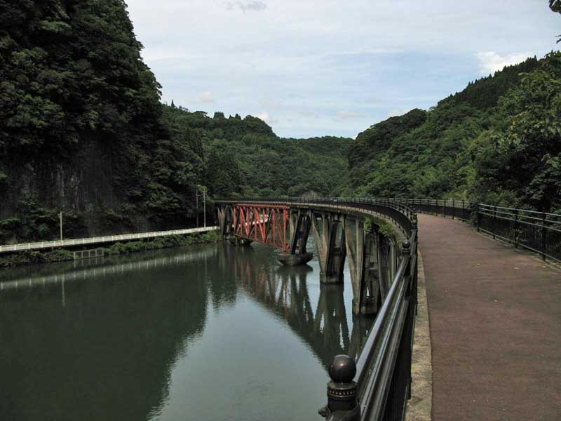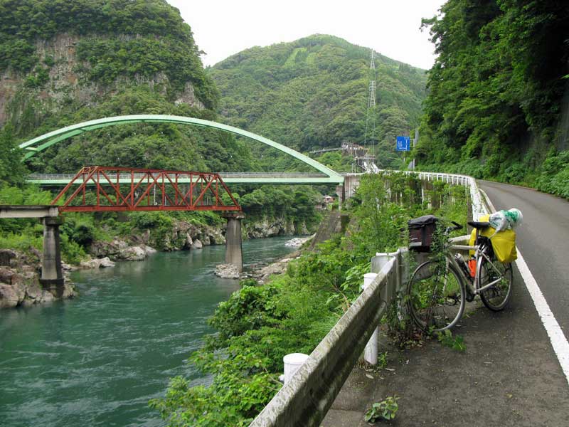 日之影の町の手前にて。諸塚、北郷に抜ける橋と(2年前に宇納間に抜けた時の峠は、なかなかきつかった)、壊れた鉄橋。