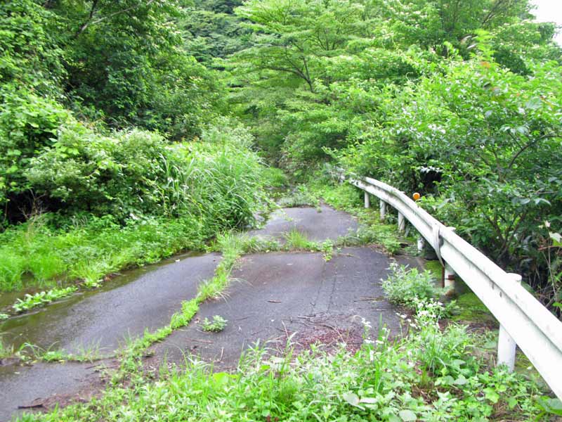かつては人や車の往来が激しかった道路が、今では人知れず寂しく自然にとけ込んでいる風景は、いろんなことを感じさせてくれます。
