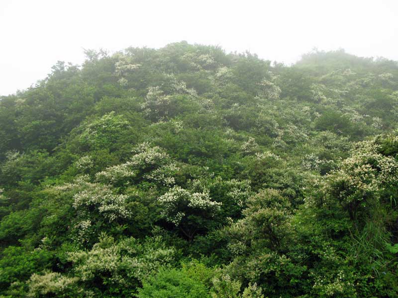 遠景はイマイチでしたが、道路端にはきれいな白い花とガクアジサイの一種(なんて花かな?どなたか教えてくださいな)の群落がありました。