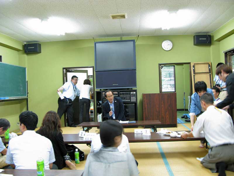 いよいよ交流会。まずはコッコファームの松岡社長の挨拶に始まり、アイロード社長福永さん挨拶、自己紹介(僕は自転車で来ました、これで掴みはバッチリです)、五ヶ瀬町夕日の里の地域作りのお話を、仕掛人の後藤福光さんにして頂きました。(この日は夕日の里に農家民泊です)